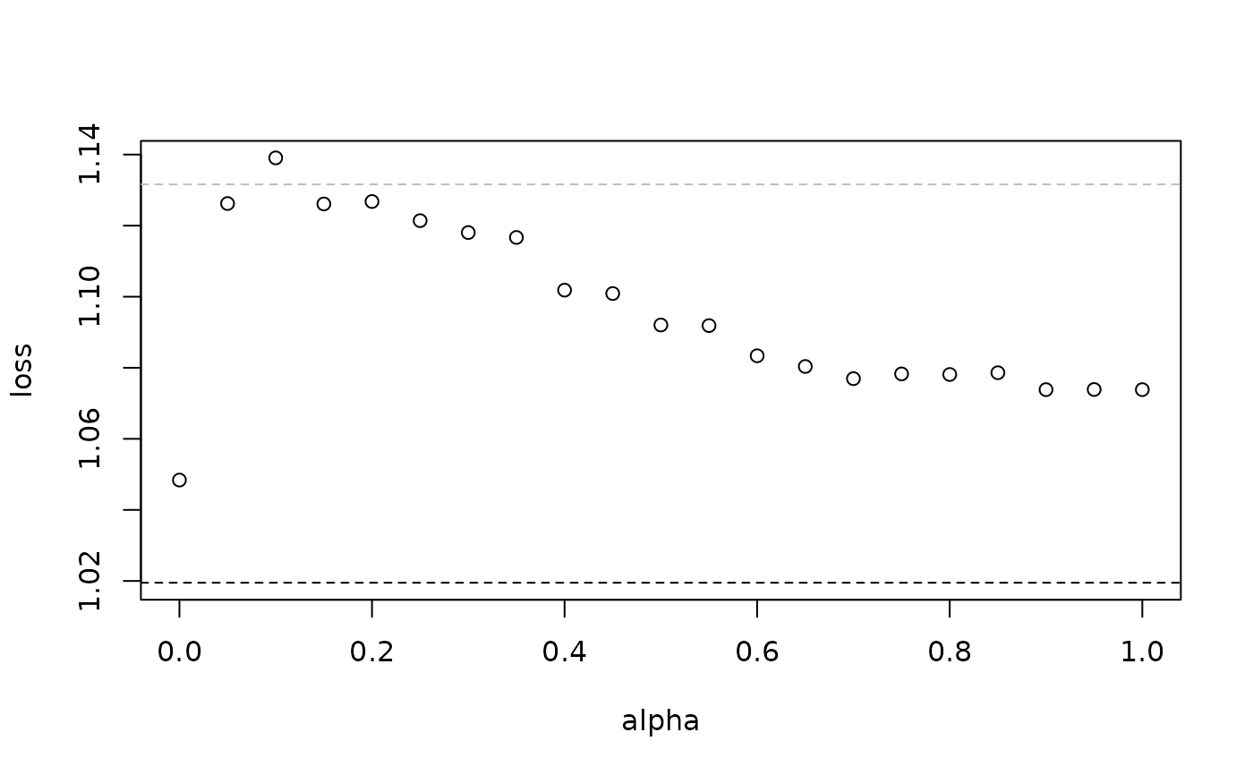 # cross-validated loss for different alpha,